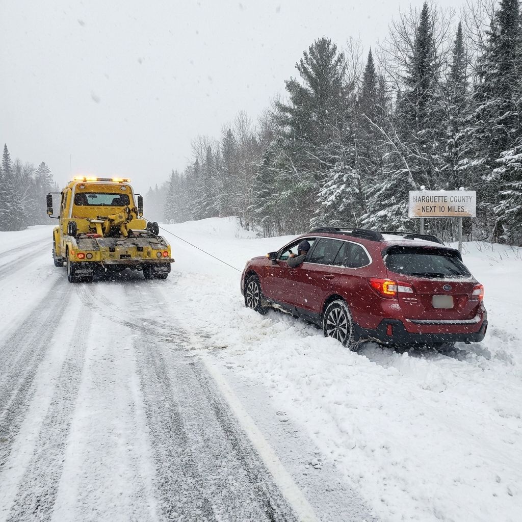 The worst possible time to research towing companies is when you need one. It's dark. It's probably cold. Your car isn't moving. You're on the shoulder of US-41 somewhere between Marquette and Negaunee, or stuck on County Road 550 with no cell bars, or sitting in an NMU parking lot with a dead battery 20 minutes before class. In that moment, you'll call the first number you find — and that's exactly how people end up waiting two hours for a truck that was actually dispatched from Escanaba, or paying $300 for a local tow because they couldn't negotiate from the side of the road. Here's how to make a better decision now, before you ever need it. 1. "24/7" Means Different Things — Ask Specifically About U.P. Response Every towing company in America says they're available 24/7. That doesn't tell you what you actually need to know: Where is the driver coming from when you call at 2 AM on a Tuesday in February? In the Upper Peninsula, this matters more than anywhere else. A company based in Marquette can reach most of Marquette County within 20-40 minutes. A company answering a Marquette-area number but dispatching from Escanaba or Iron Mountain might tell you 45 minutes and mean two hours — especially if Highway 41 is down to one lane in a whiteout. Ask directly: "Where are your drivers located when they're on call overnight? Can you give me a realistic arrival time for [your specific location]?" A local company will give you a specific, confident answer. A dispatch service routing calls to contractors from other markets will be vague. 2. Verify They're Licensed and Insured in Michigan Michigan requires towing companies to carry proper licensing and insurance, but enforcement is inconsistent and unlicensed operators do exist — particularly seasonal or informal operators who show up after major storms. Before you hire anyone, ask for: Michigan Motor Carrier license (required for towing operations on public roads) General liability insurance — minimum $1 million per occurrence Garage keeper's liability insurance — this specifically covers damage to your vehicle while it's in their care, custody, or control That last one matters more than most people realize. If your car is damaged during the tow — a scratched bumper, a cracked rim from improper hookup, or a vehicle dropped off a flatbed — standard liability insurance may not cover it. Garage keeper's liability does. Ask: "Do you carry garage keeper's liability insurance?" A company that does will know exactly what you're asking. One that doesn't might not. 3. Understand the Marquette-Specific Pricing Variables Towing in the U.P. has cost variables that don't exist in urban markets, and understanding them prevents sticker shock when the invoice arrives. Distance is the biggest factor. Marquette County covers over 1,800 square miles. A tow from Big Bay to Marquette is 30+ miles one way. A tow from the city to a shop down the street is 3 miles. These are completely different jobs, and the pricing should reflect that. Most reputable companies charge a base hook-up fee ($50-100) plus a per-mile rate ($2-5/mile). Get the per-mile rate confirmed before you agree to anything. Winch-outs are priced separately from towing. If your car slid into a ditch or snowbank on County Road 550, the recovery itself — using a winch to extract the vehicle from where it's stuck — is typically charged separately from the tow to a shop or your home. Both are legitimate charges; just make sure you understand what you're agreeing to before the truck arrives. Remote locations carry higher effective costs. The further a company has to drive to reach you, the more their time and fuel cost to get there. This is real — don't be surprised if a call from a remote location near Big Bay or Gwinn is priced higher than a downtown Marquette call. Ask for a verbal estimate before the truck dispatches. Tell them your exact location, your vehicle type, and where you need to go. Any reputable company will give you a ballpark number. If they refuse to provide any estimate before arriving, that's a warning sign. 4. Know Who You're Actually Calling — Local vs. National Dispatch This is the single most common source of complaints about towing services, and it's largely invisible to consumers. Many national roadside assistance apps and some 1-800 towing numbers don't actually own trucks. They're dispatch services that contract with whoever is available in your area. In Marquette County, that network can be thin — meaning your call might go to whoever responds first, not whoever is most qualified, closest, or most reputable. You may also end up paying national-chain rates for a local contractor job, with a layer of margin extracted by the dispatch middleman. The safest approach in Marquette: Save the number of a specific local towing company you've researched ahead of time. When something goes wrong, call them directly. You'll get faster service, better rates, and someone who knows exactly where County Road 480 actually is. 5. Summer and Tourist Breakdowns — A Different Set of Risks Most people associate Marquette towing with winter, but summer brings its own breakdown patterns — and a specific set of risks that visitors and tourists face. Every summer, thousands of people come to Marquette for the hiking trails at Presque Isle, waterfalls along County Road 550, and Lake Superior beaches. Many are driving older vehicles or rental cars on unfamiliar roads. Some run out of gas on routes with no cell service. Some have tire failures on gravel roads they didn't expect. If you're visiting the U.P. this summer: Cell service is spotty or nonexistent on many stretches between Marquette and Big Bay, along M-28 east of Munising, and on many inland county roads. If your car breaks down in a dead zone, you may need to walk to signal or wait for another driver. Having a downloaded offline map helps. AAA coverage has limits. Standard AAA membership covers towing up to 5 miles. I